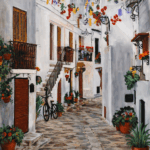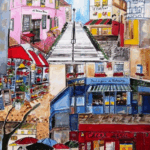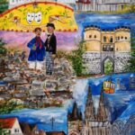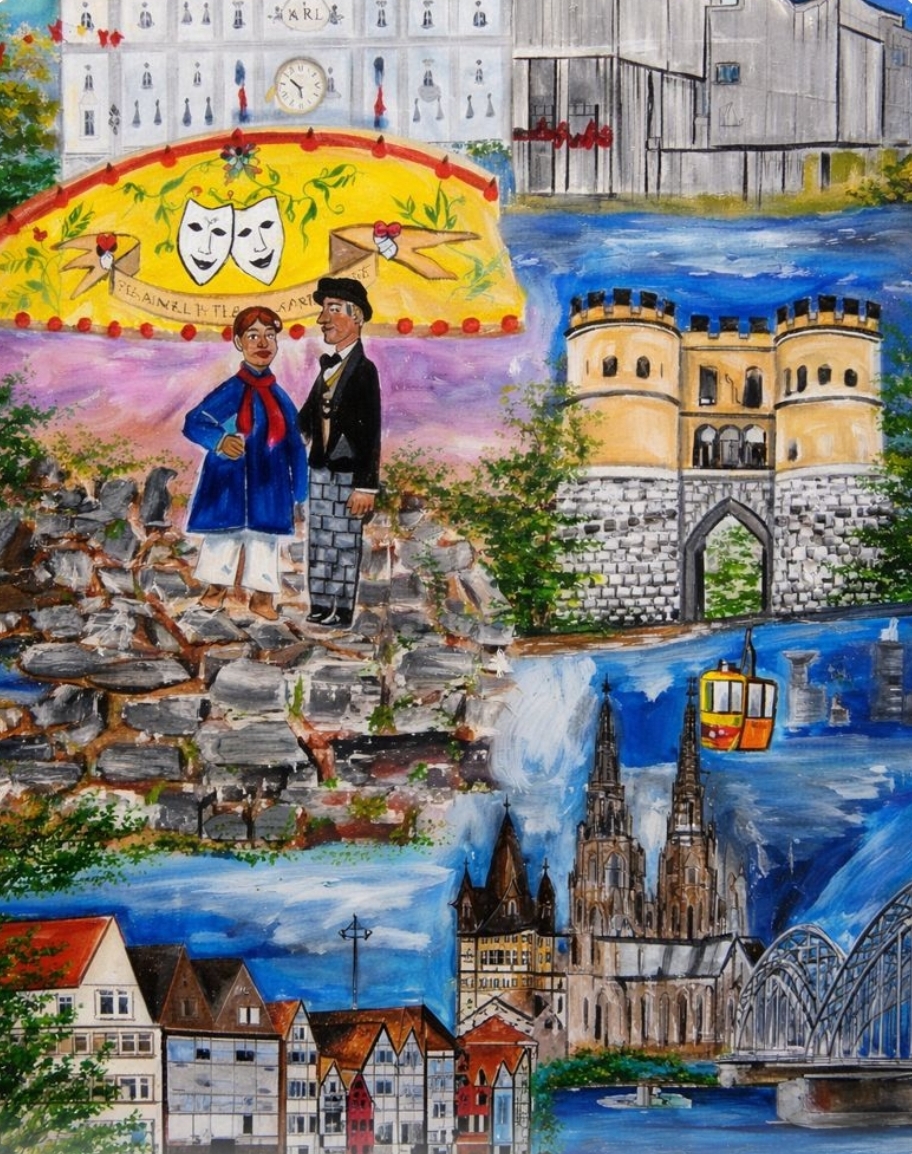 Dieses farbenfrohe Werk fängt die lebendige Atmosphäre der Rheinmetropole ein.